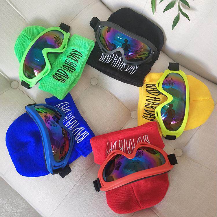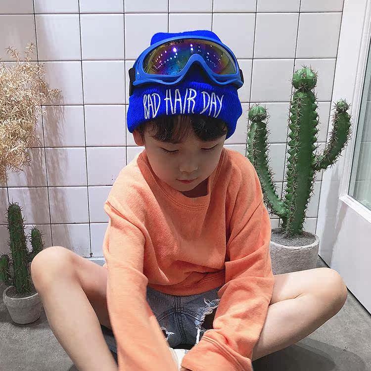 Add velvet children's wool hat tide baby autumn and winter boys and girls knitted hat ski glasses ear protection warm pullover hat