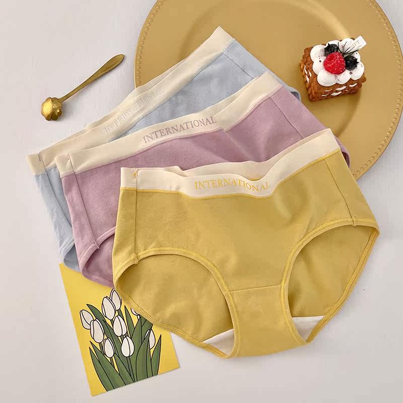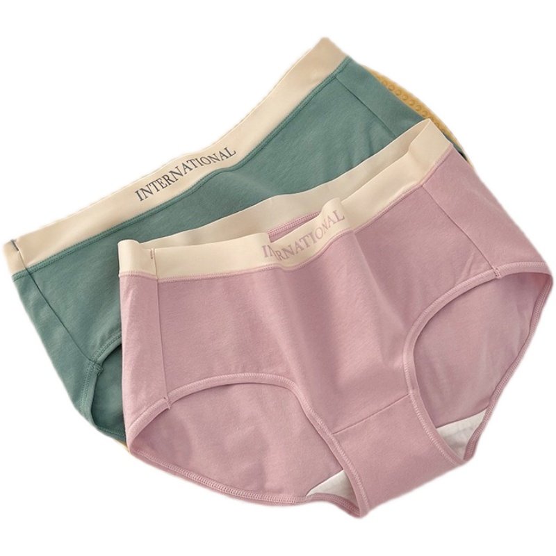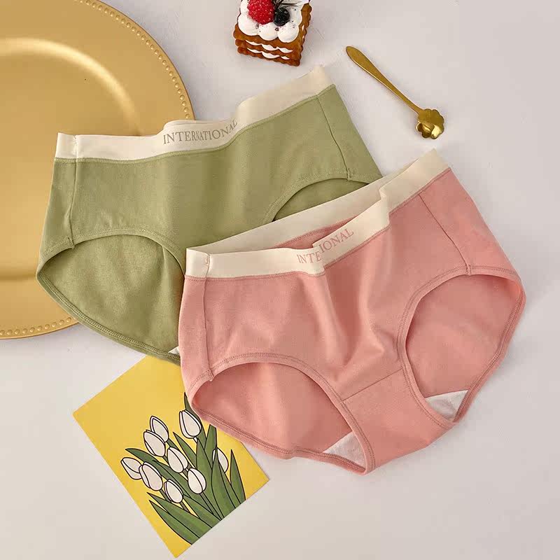 Puff Home Shop~ Crispy, soft, pure, chic, girly panties, simple and generous, solid color, Morandi color mid-waist