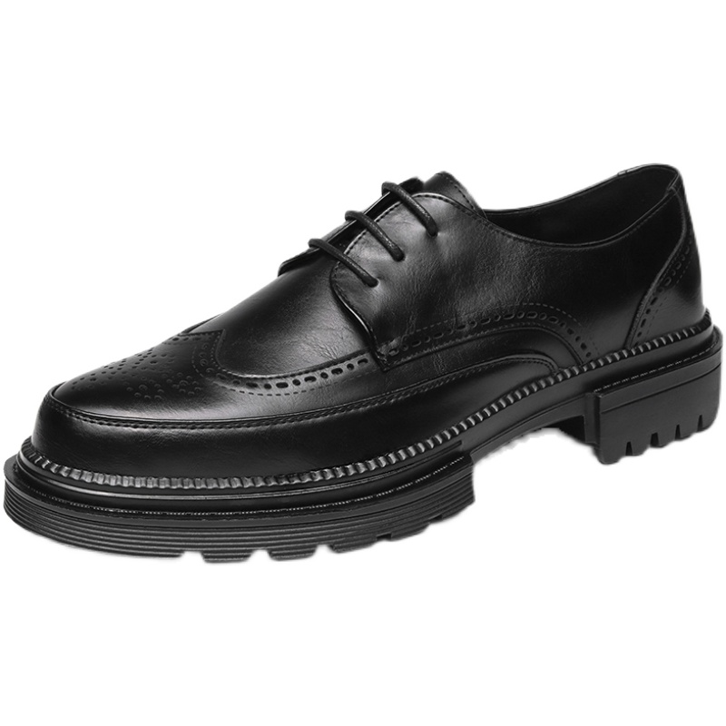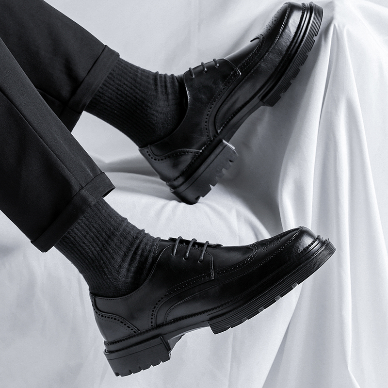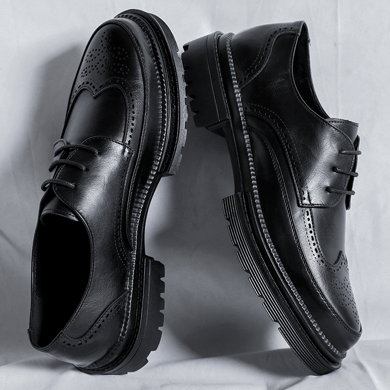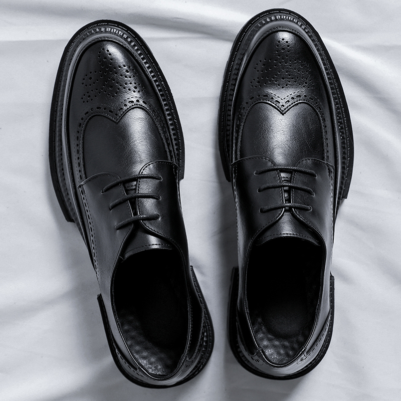 Leather shoes men's business formal wear British style black with suit casual all-match brogue carved groom wedding shoes
