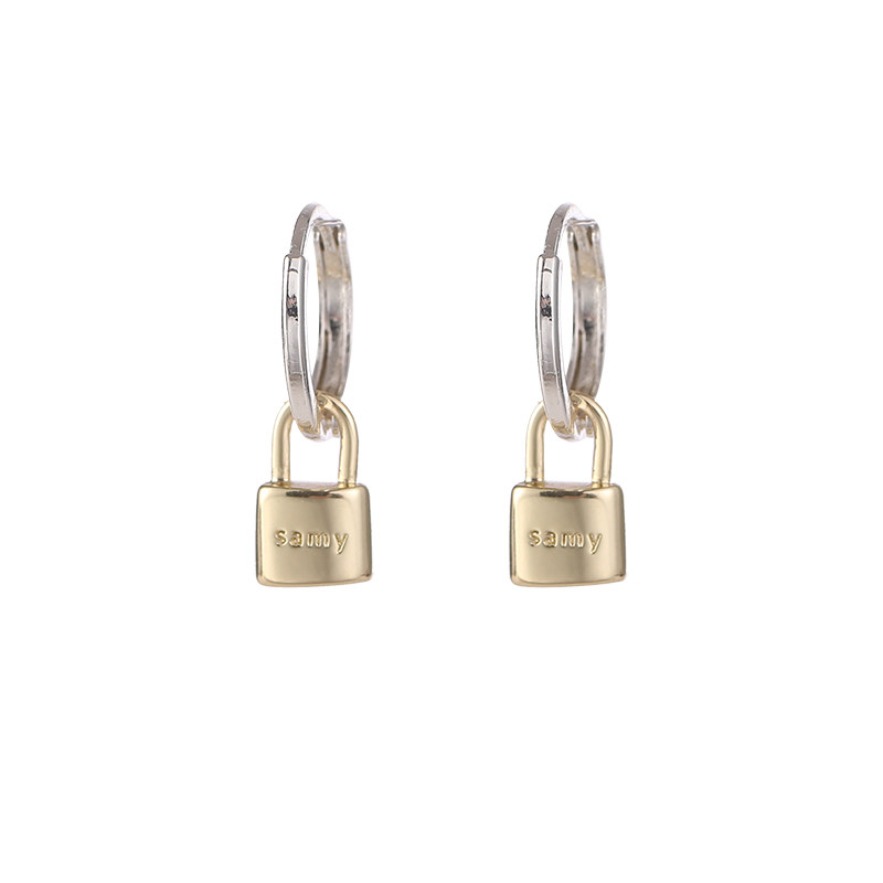 Ins cold wind metal texture small lock earrings niche design sense simple earring earrings retro net red earrings