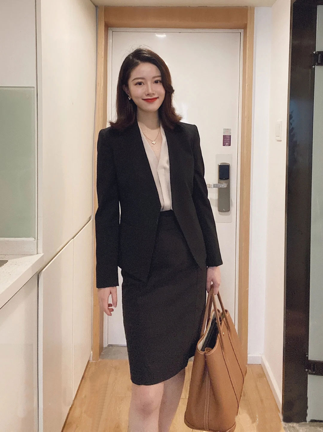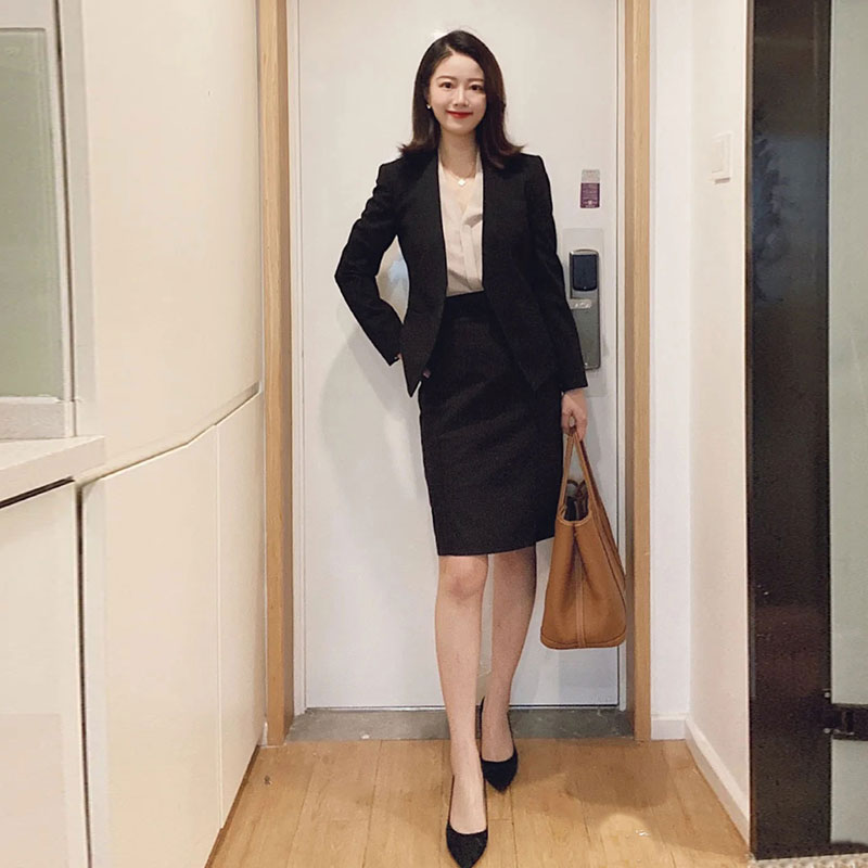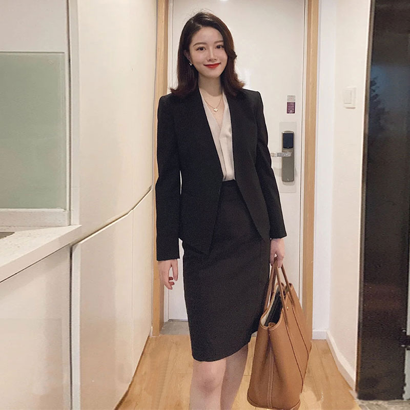 Spring high-end black women's professional suit set decoration body slim temperament suit skirt work clothes two-piece women's