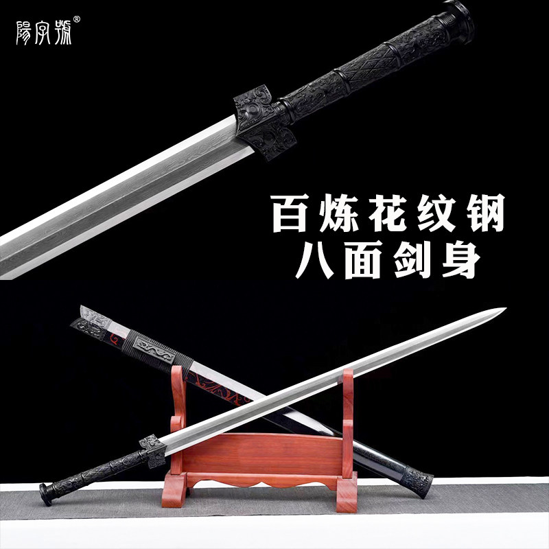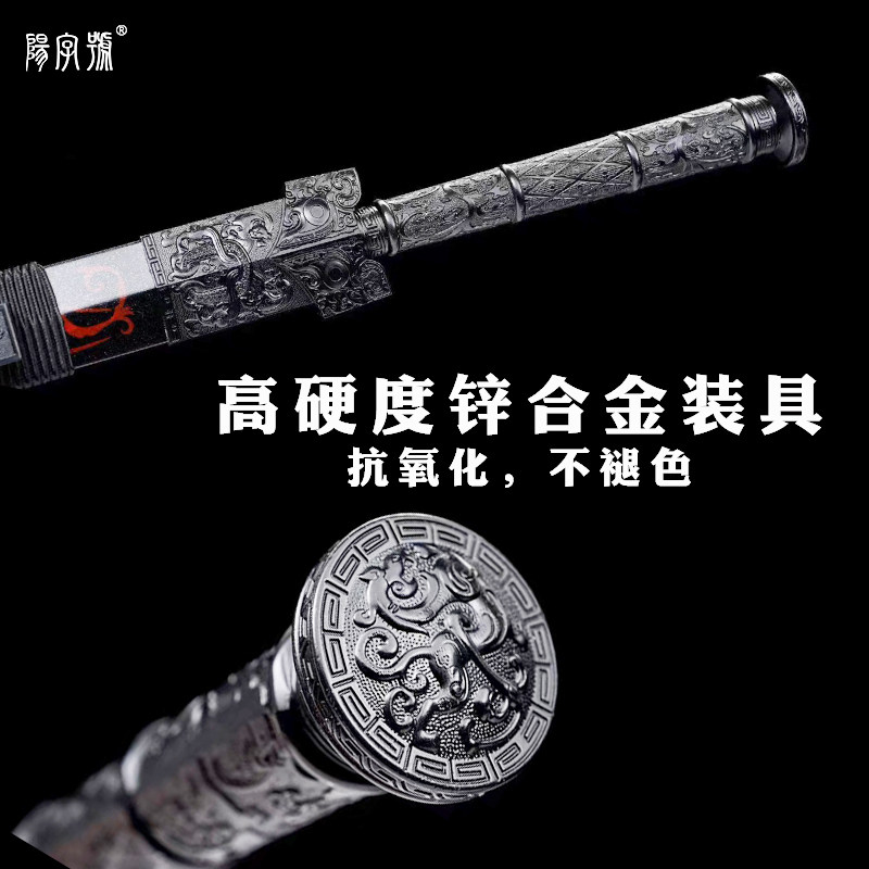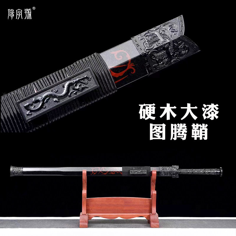 Black dragon Han sword Longquan city Yangword number knife sword hard wood totem sheath 100-chain patterned steel octafacial cold weapon unopened