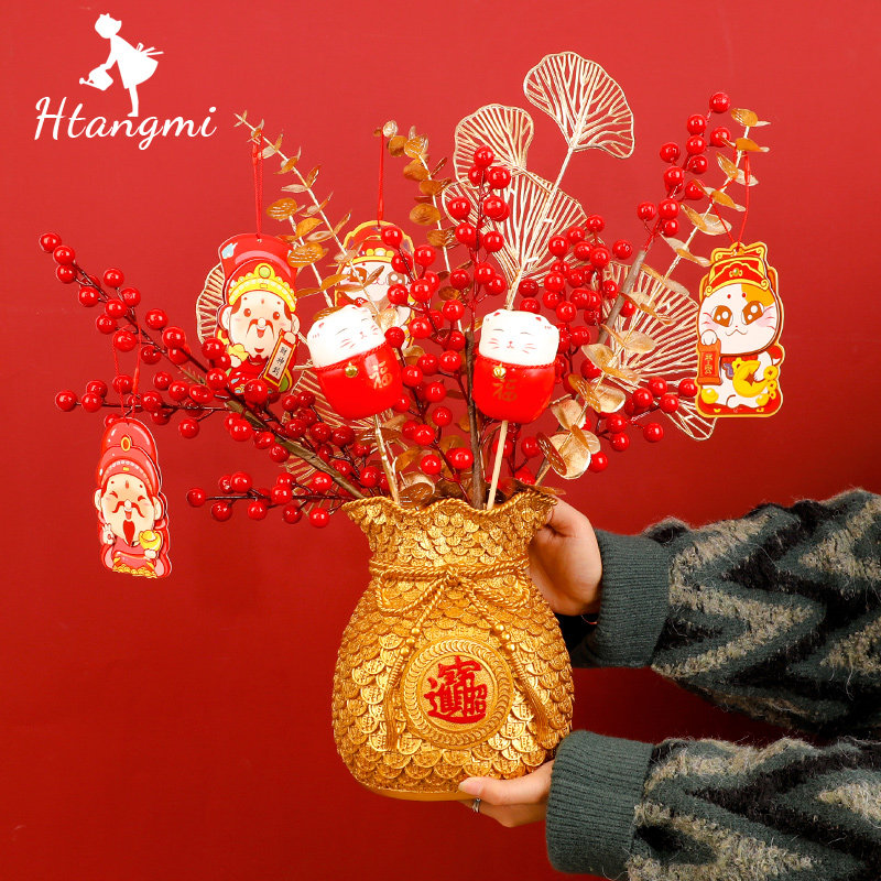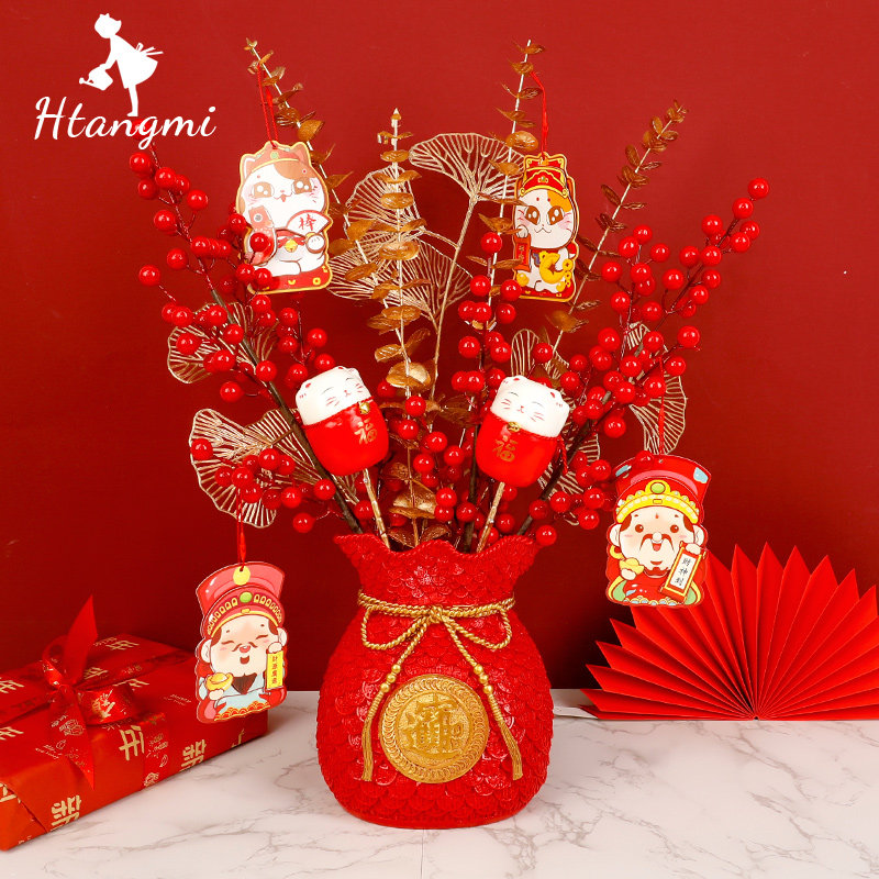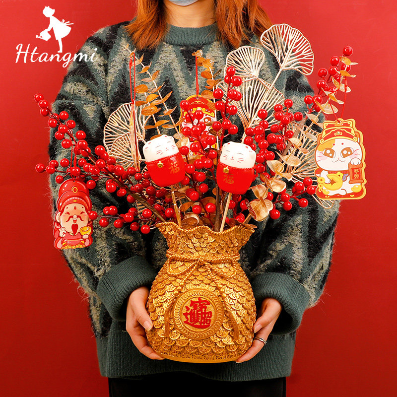 2022 New Year Home Swing Accessories Money Bags Blessed Barrel Winter Green Silver Willow Dried Flowers Fake Flowers Vase Floral Floral Floral Flower
