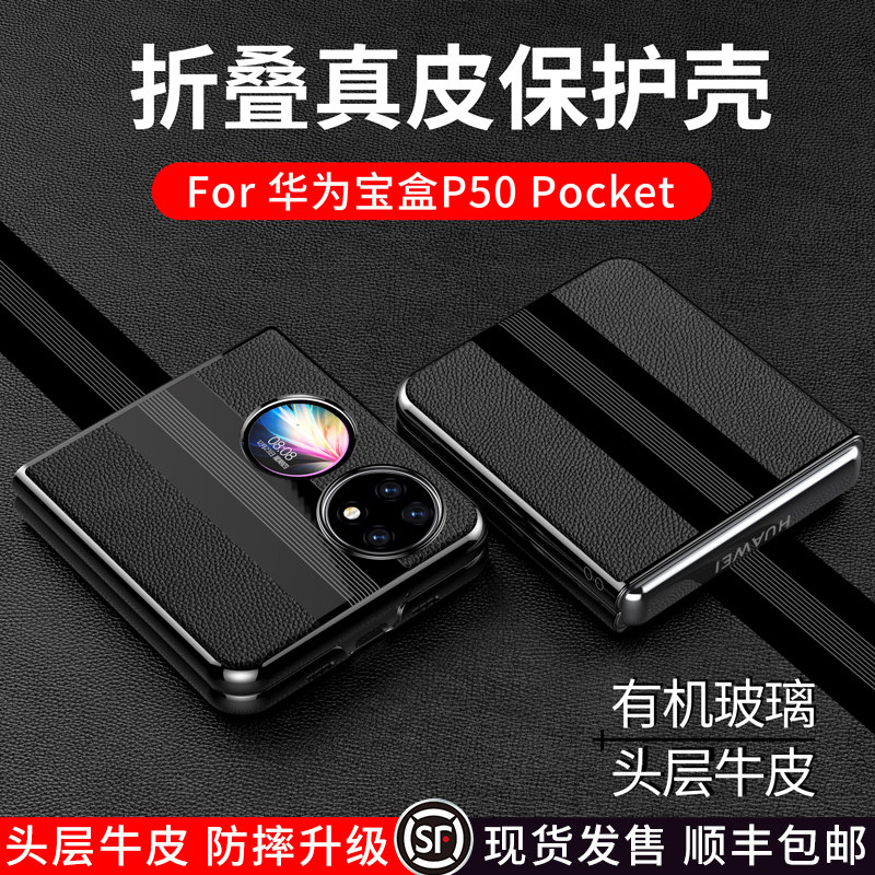 Suitable for new Huawei p50pocket folding mobile phone protection shell genuine leather p50 treasure box protective sleeve poket upscale folding screen housing leather cover full bag anti-fall housing limited edition personality male and female
