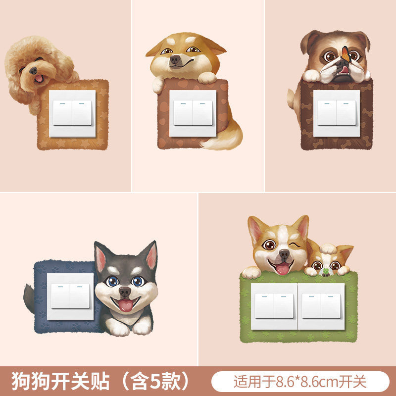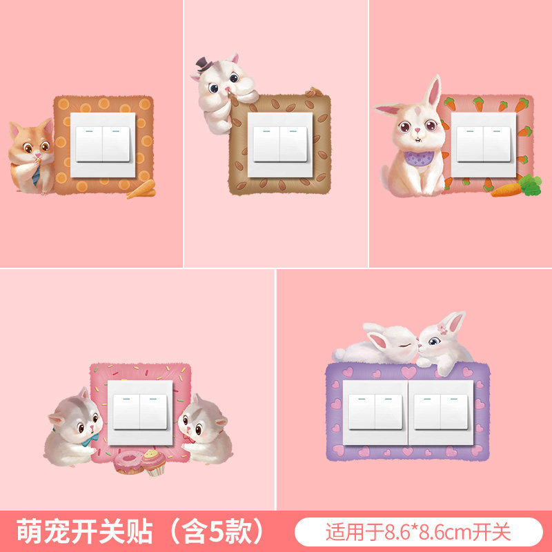 Cartoon Cute Animal Animal Switch Sticker Switch Sleeve Socket Sticker Home Pet Store Kindergarten Decoration Wall Sticker