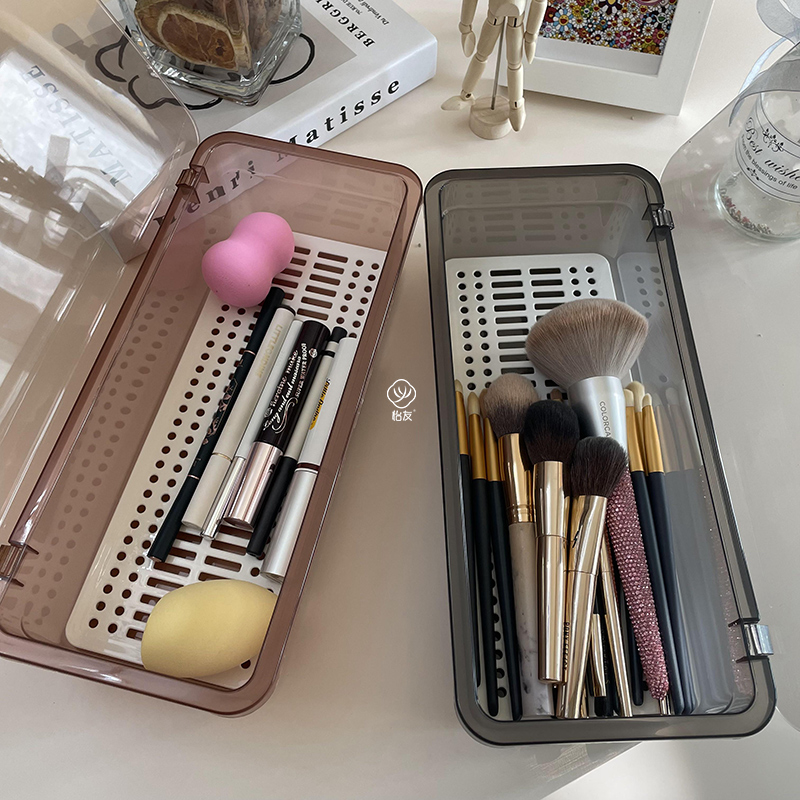 Makeup brush storage box - gray makeup brush storage box - brown transparent box 2 packs (with buckle) brown two packs gray two packs brown two packs gray two packs