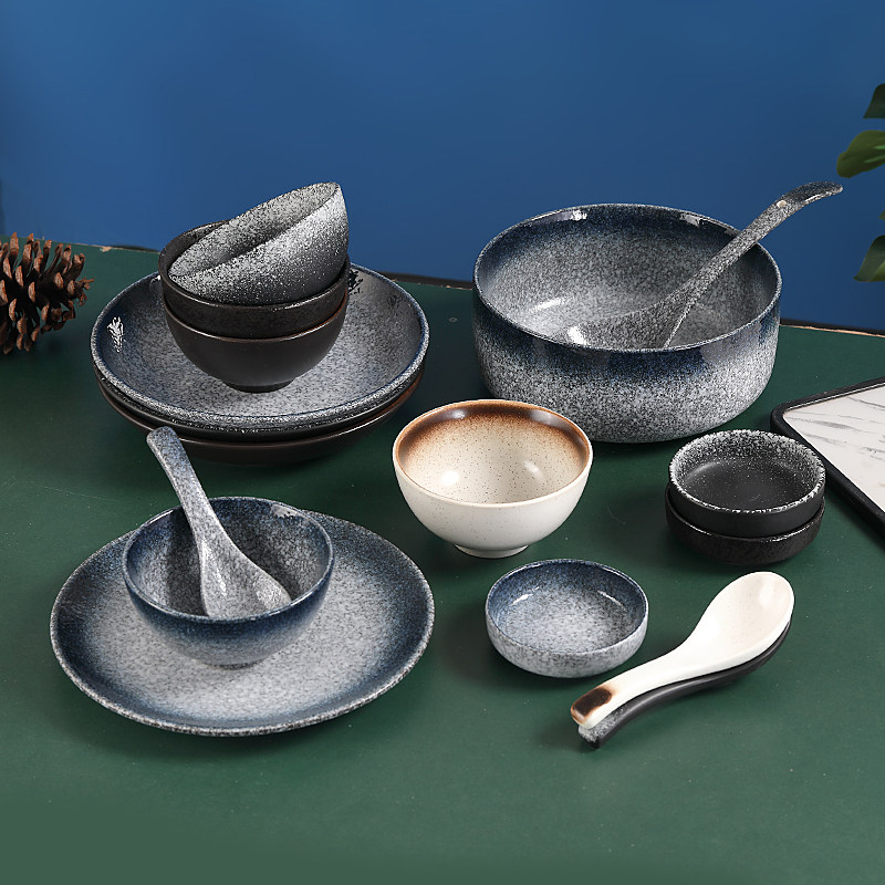 Japanese retro tableware ceramic rice bowl breakfast bowl meal dish set household bowl plate soup bowl soup spoon