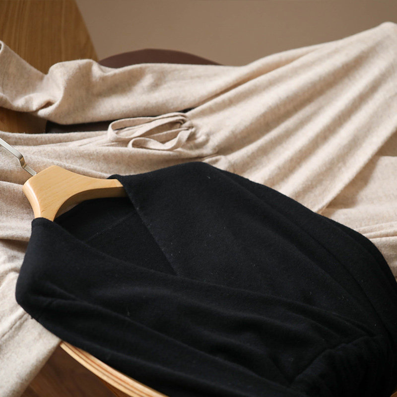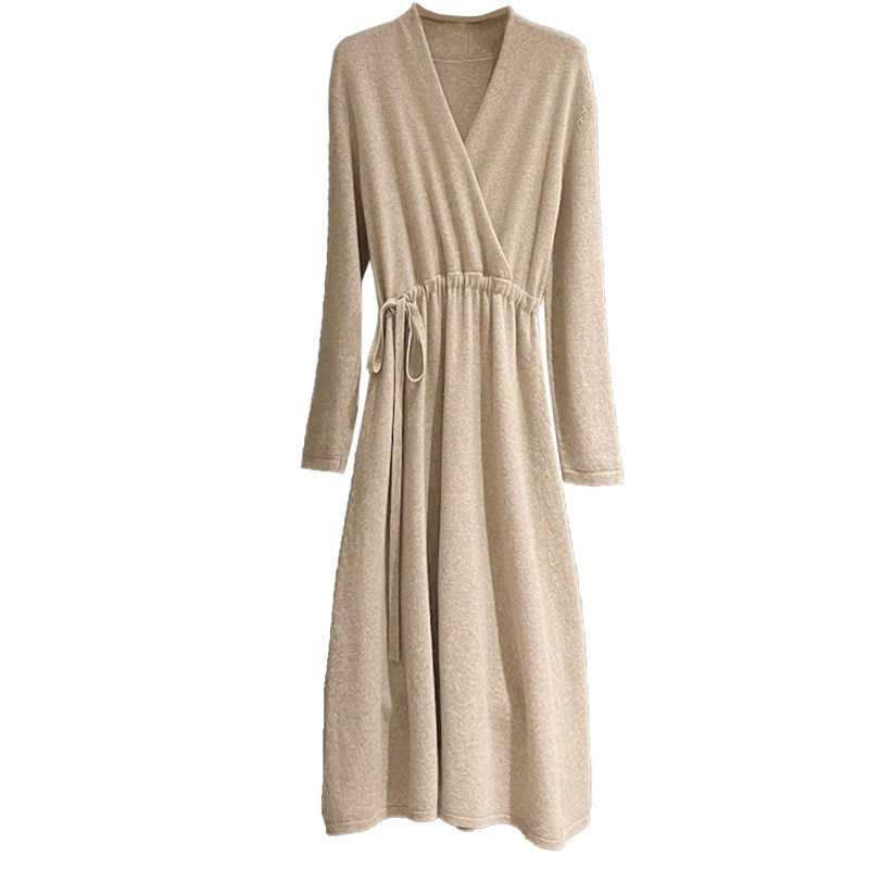 Looking at knitting, you will know good things. Tight weaving method is thin and high waist V-neck wool bottoming knitted dress for women