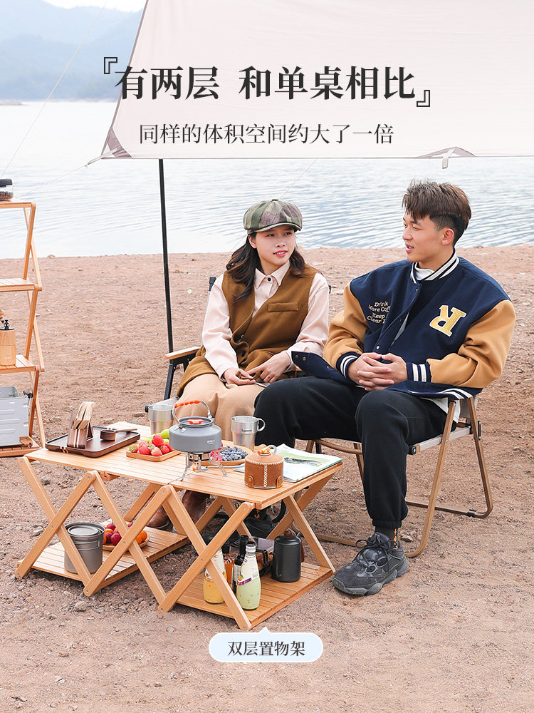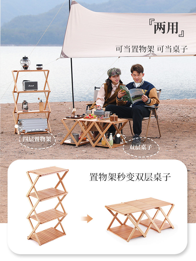 Original People Outdoor Folding Table Camping Supplies Portable Multilayer Containing Storage Racks Wild Camping Picnic Tables