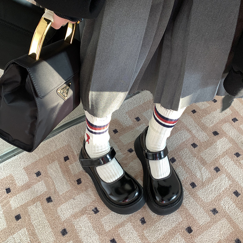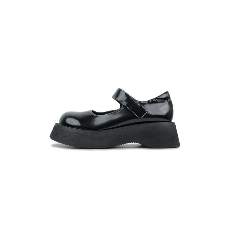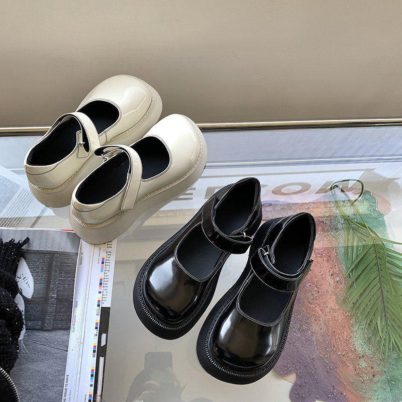 Abao's big head Velcro sponge cake thick bottom leather Mary Jane shoes women's spring new ugly cute retro small leather shoes