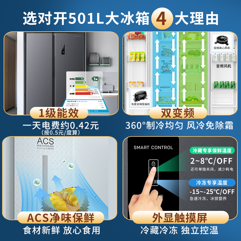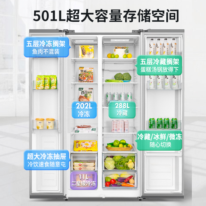 Crewy 501 Liter Double Door Fridge Home Air-cooled Frostless Level Energy Saving Frequency Conversion Double Switch Two Doors Large Intelligent