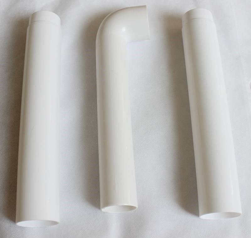 A straight pipe, a bent pipe, two straight, one curved, two straight, one curved sealant
