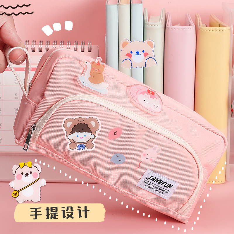 Large Capacity Pen Bag Girl Ins Day Series High Face Value Pencil Bag Cute Elementary School Boy Simple Net Red Stationery Bag Junior High School Students Pencil Case Double Cloth Bag Simple Canvas Multifunction