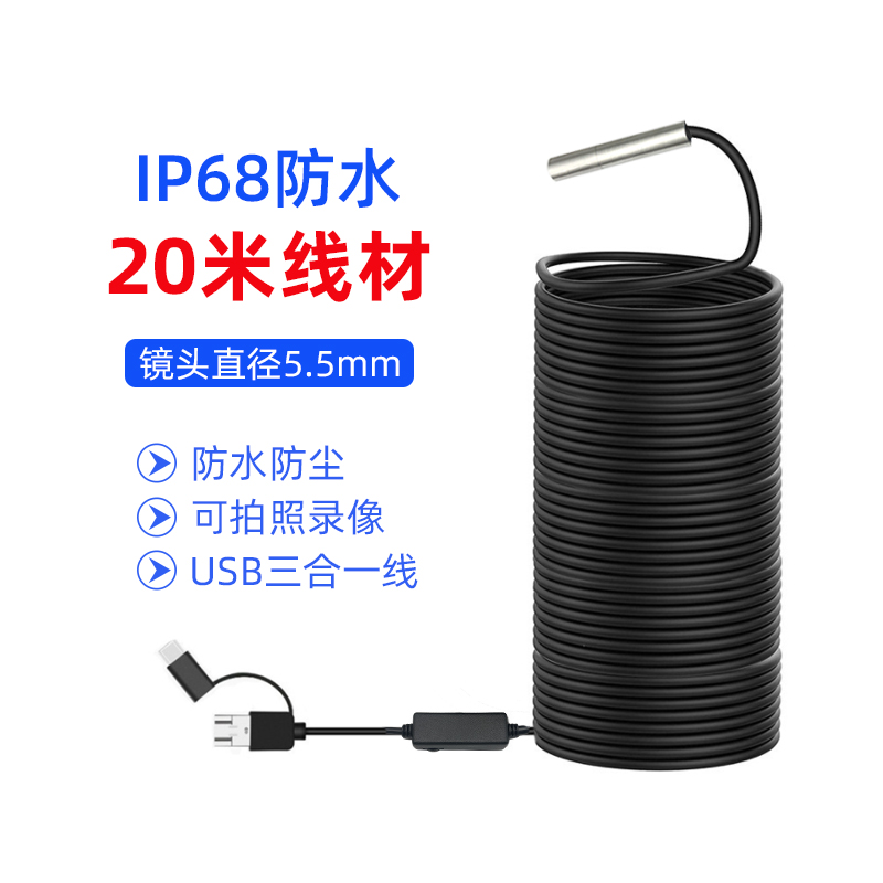 5 5mm HD endoscopic camera 20 meters wire industrial piping waterproof medical steam repair detection monitor Android