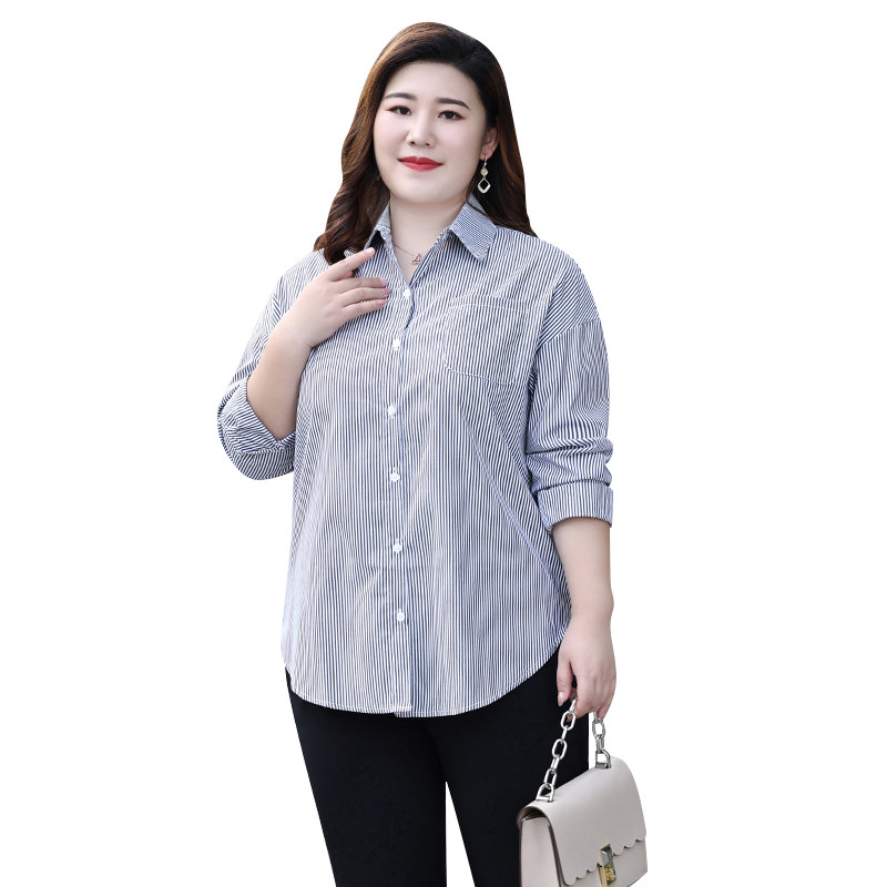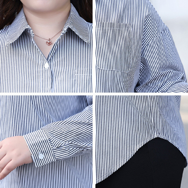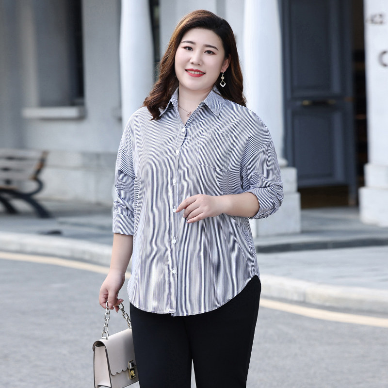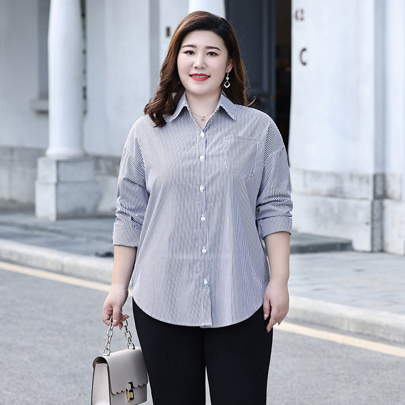 Plus size women's fat mm casual striped shirt 2022 autumn shirt long-sleeved plus fat fashion fat mother clothes
