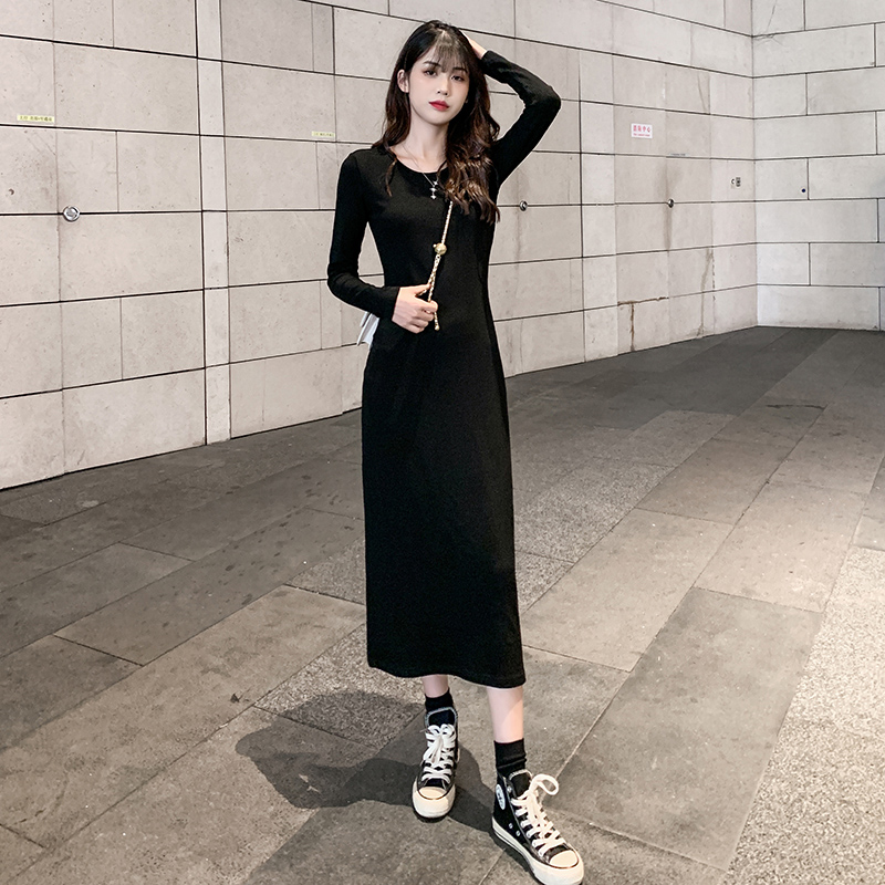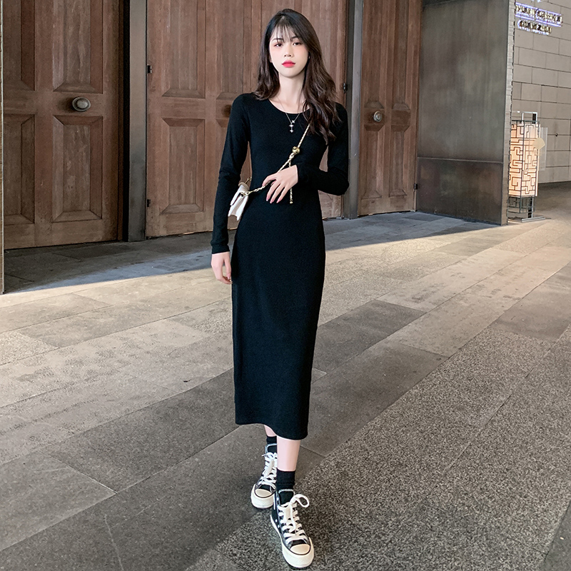 Black Knit One-piece Dress Fall 2023 New Women's Dress Inside Hitch Bottom Fit Winter Worthy Dresses Dresses Long-Taobao