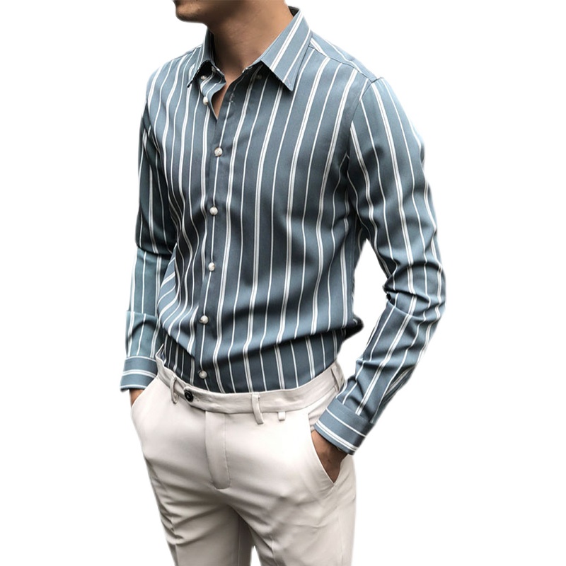 Light luxury striped shirt male long sleeve business dress high-end menstrual trend leisure free shirt men senior sense