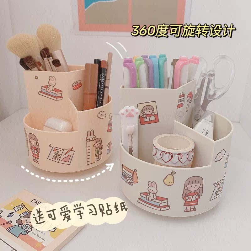 360-degree rotatable pen container simple vertical cute large-capacity student desktop multifunctional stationery storage box
