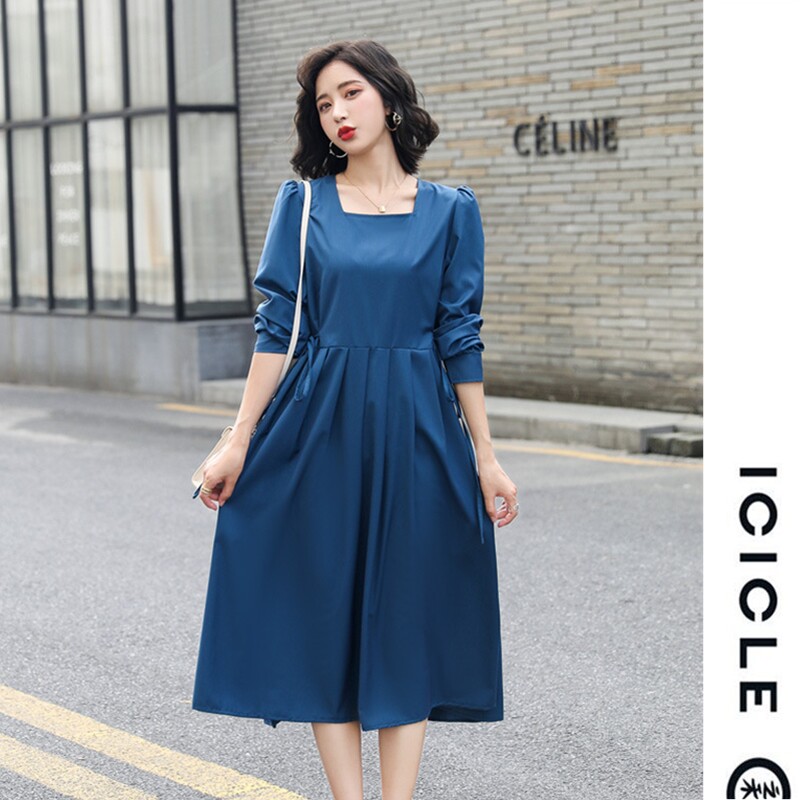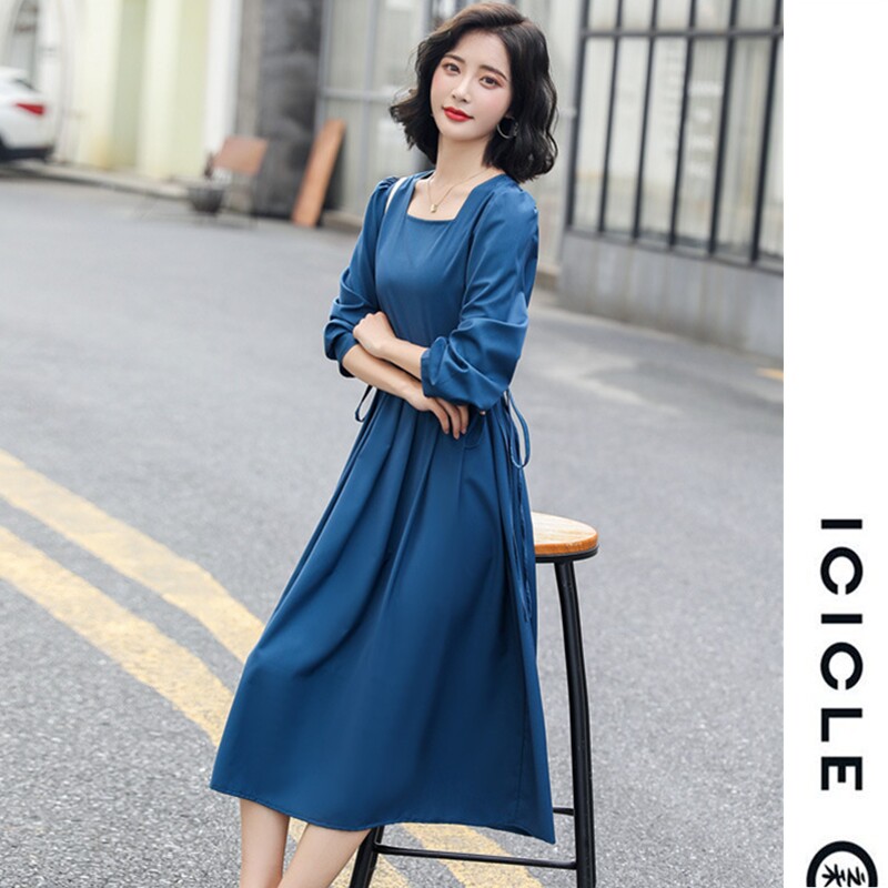 ICICLE Zhihe mid-length dress 2022 spring new women's dress waist bottoming skirt tea break skirt