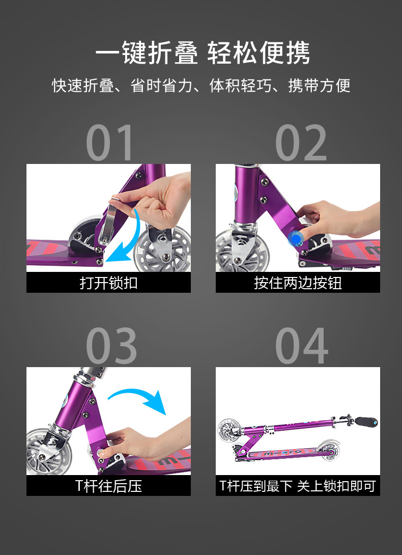 Swiss micro Maigumi high spirits scooter beginners 2-wheel LED flash wheel light can be folded