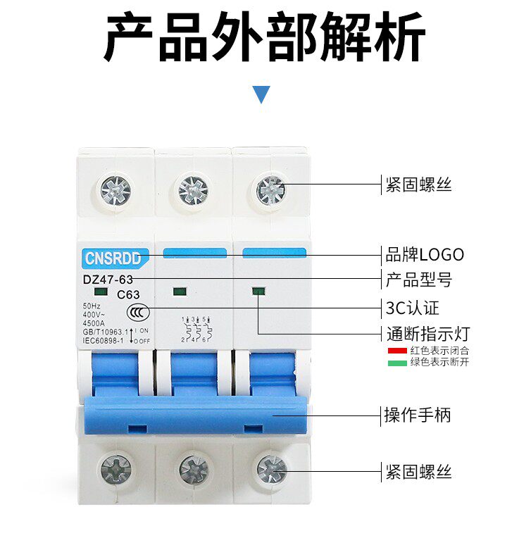 Small circuit breaker DZ47-63 open 2P32A3P63A three-phase air switch C45 break 1P6A4P electric gate