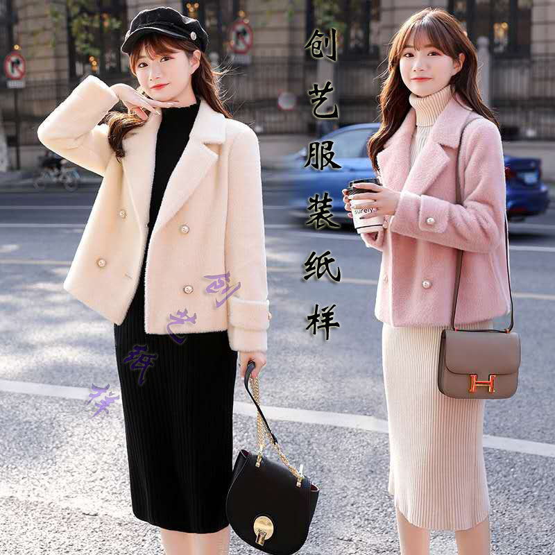Making clothes and cutting B126 mink velvet coat female small short top autumn small fragrance coat drawing sample