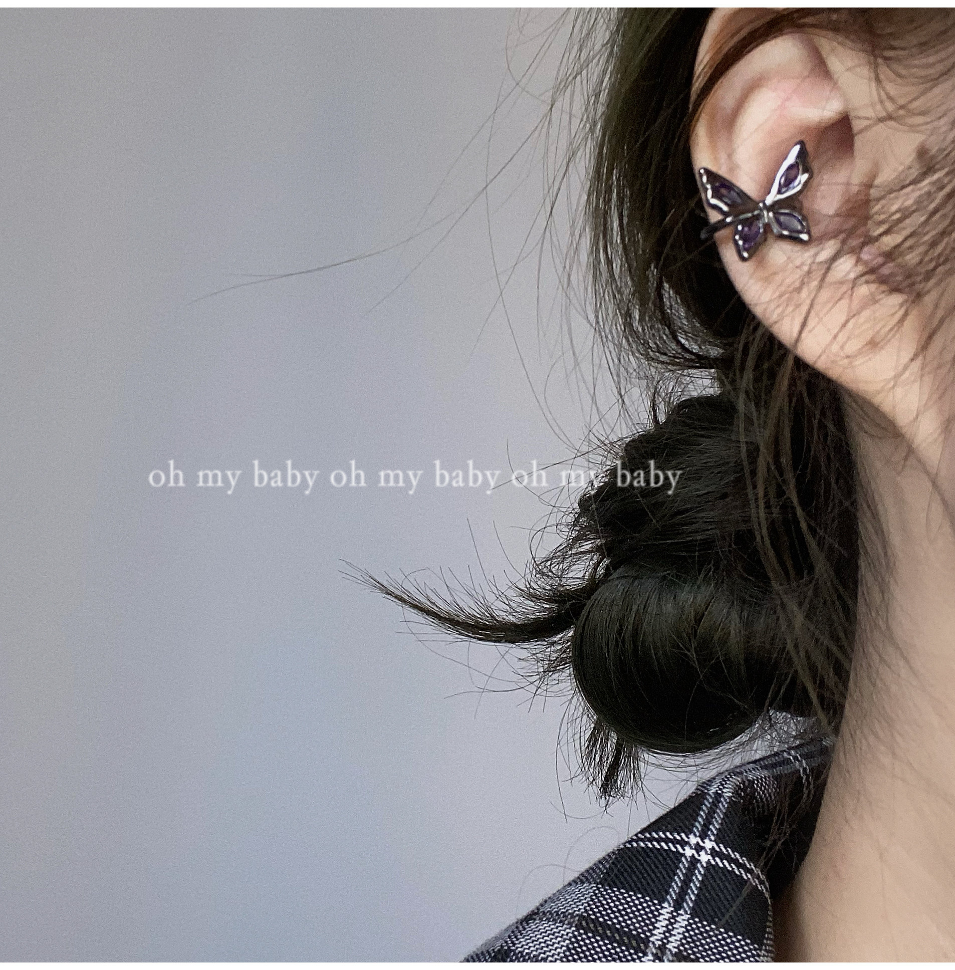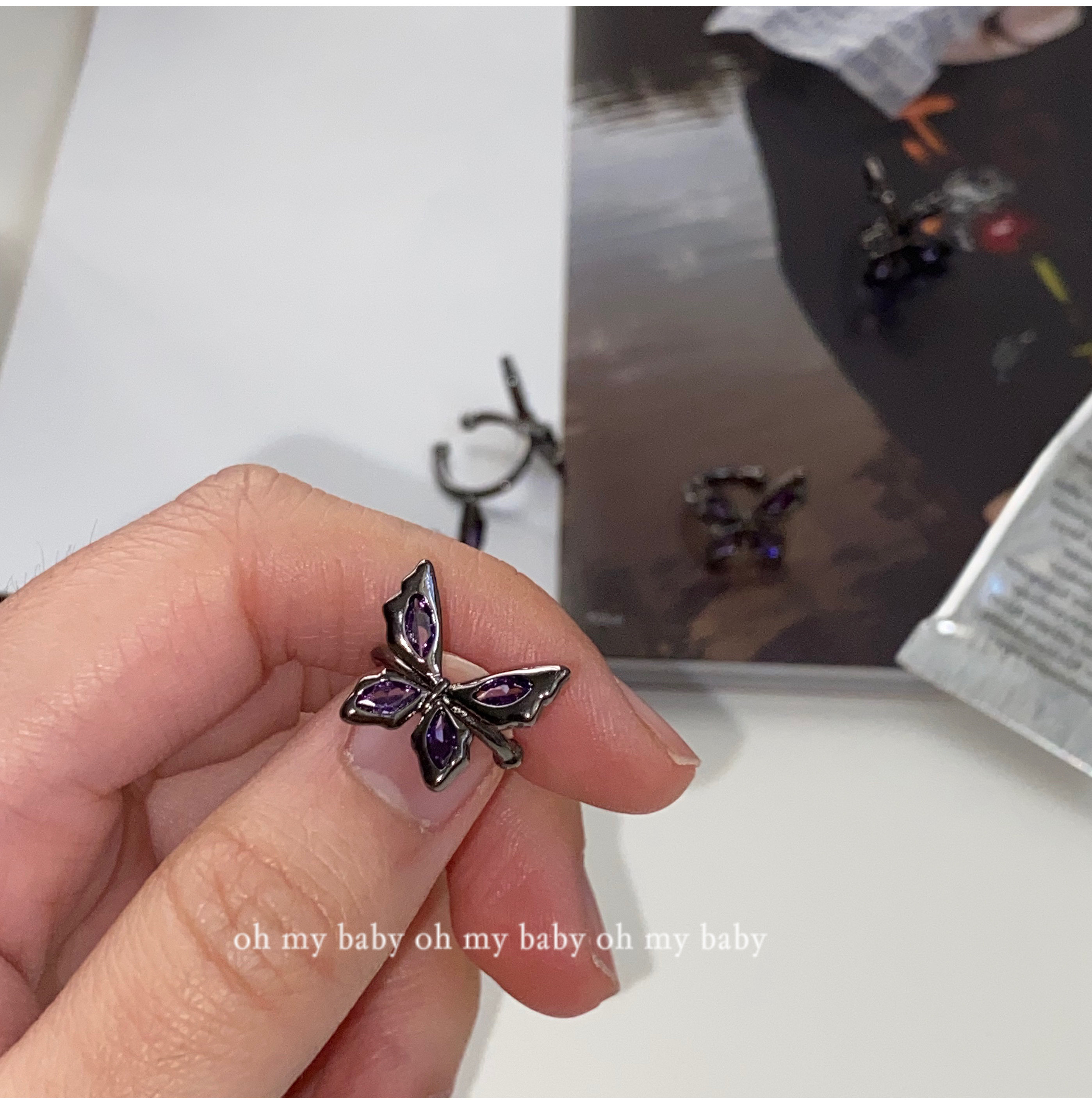 No earholes can also be worn with purple crystal butterflies black earbone clips without earholes sweet and dark black Chains