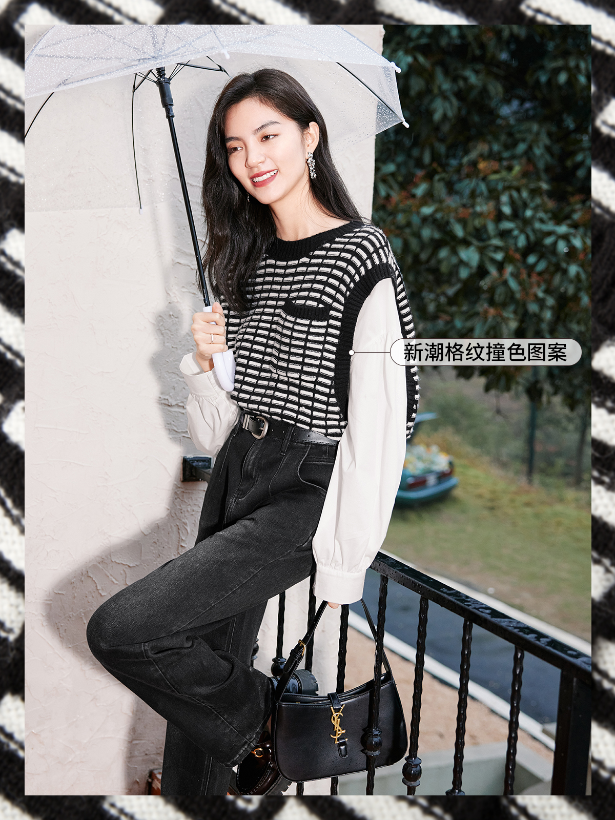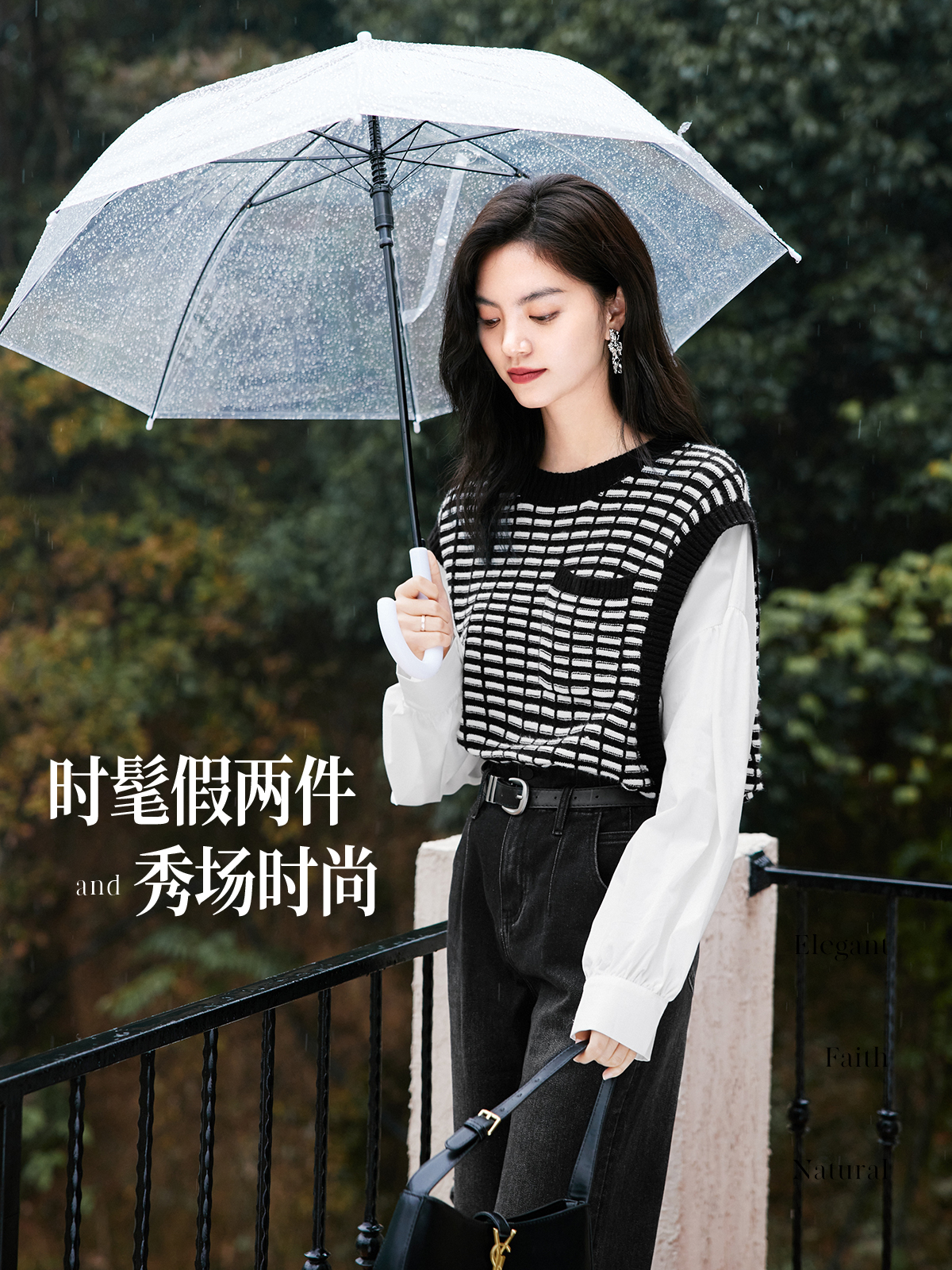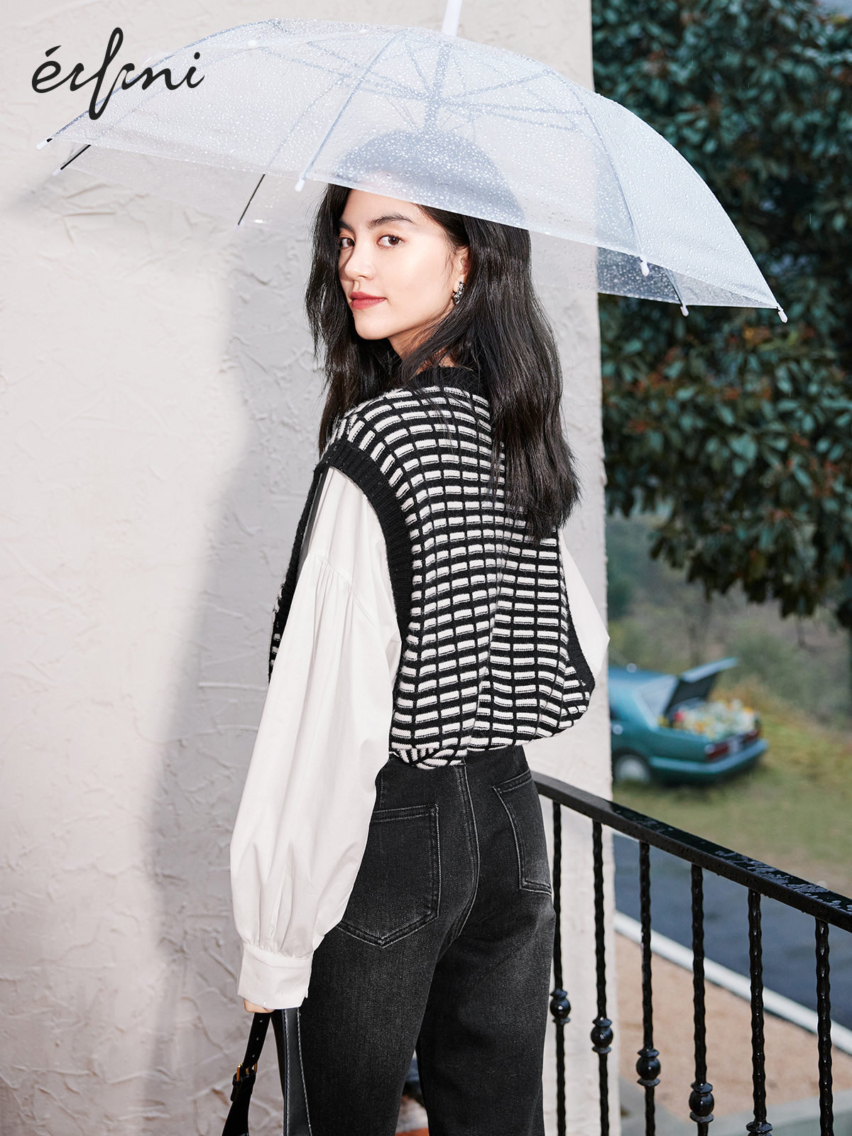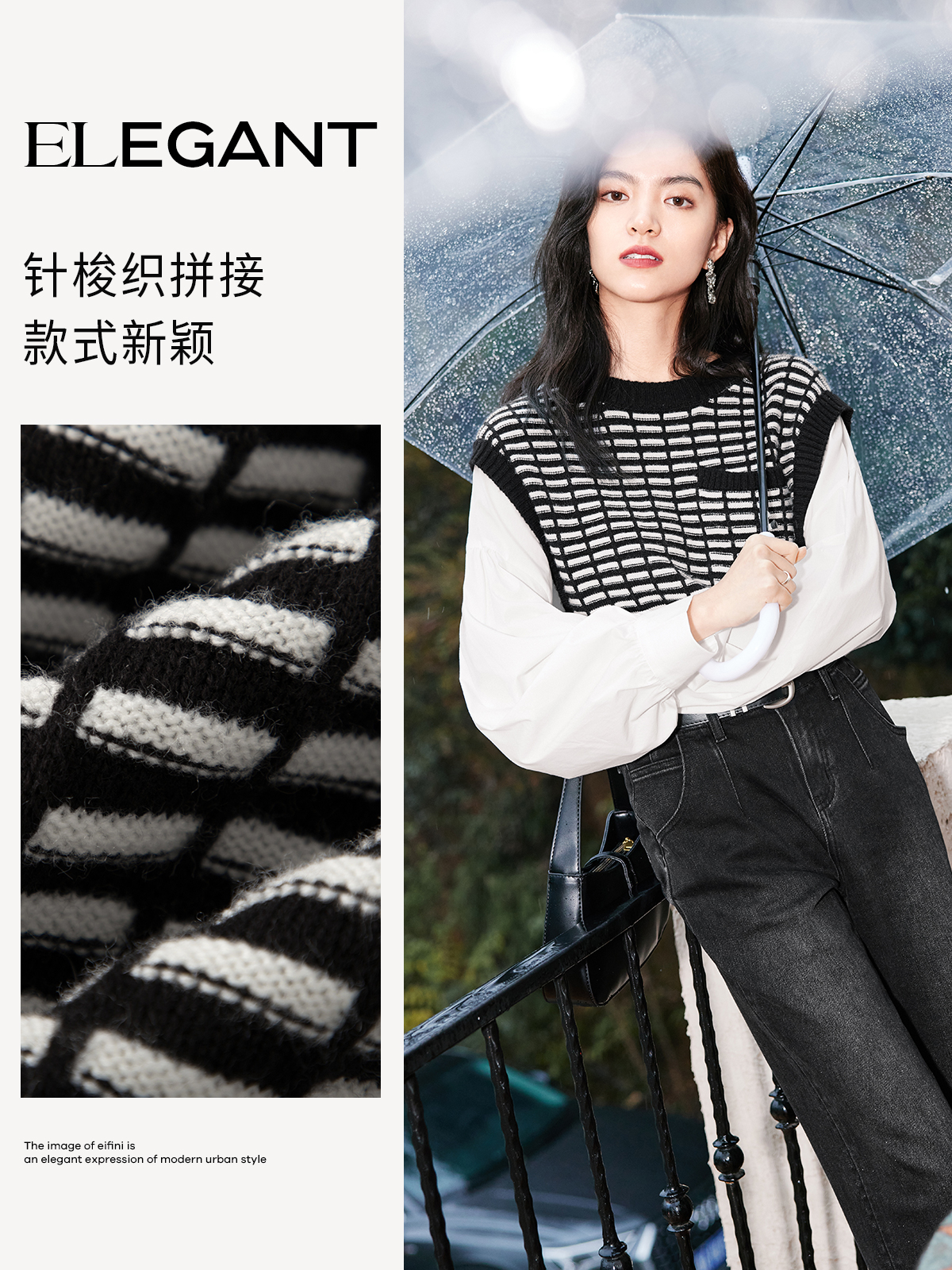 Eveli 2022 early summer new top summer sweater outer wear inner fake two pieces of black striped sweater women