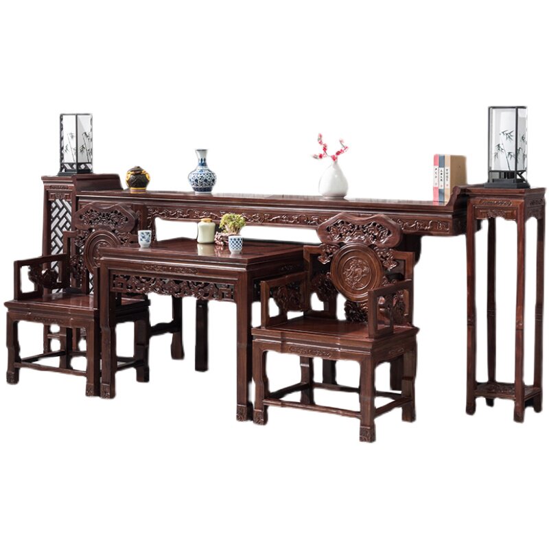 Chinese-style solid wood Zhongtang six-piece home Taishi chair Eight Immortals table four-piece rural Buddhist hall for table antique case