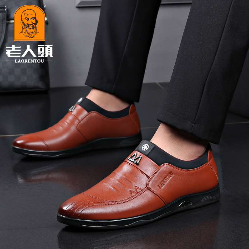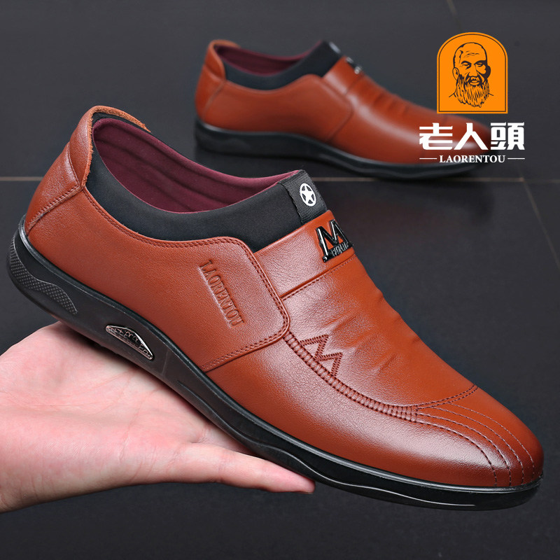 Old man's head men's shoes leather soft surface soft bottom casual leather shoes men's 2022 spring new breathable middle-aged dad shoes