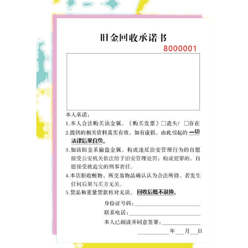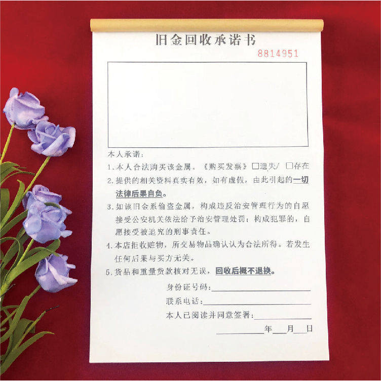 Old Gold Recycling Undertaking book One Union Custom Used Material Items Booking for Consignment Recycling Registration Form 2 couplets