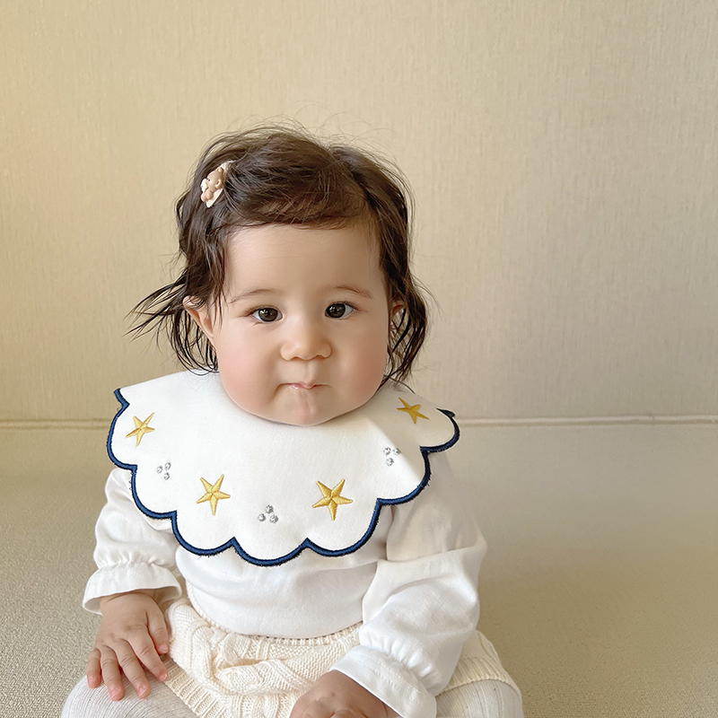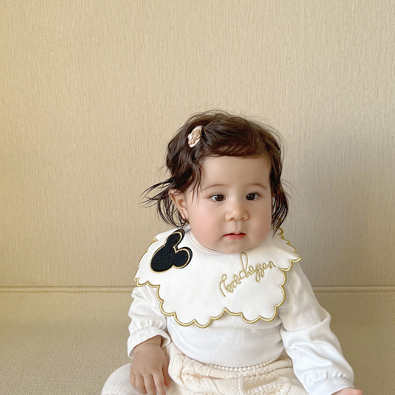 ins Han version new baby bib petal 360 swivel baby saliva towel pure cotton bib fake collar embroidered name