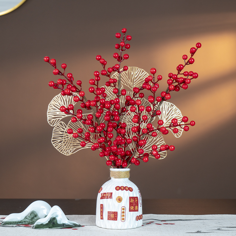2022 New Year's decoration ornaments red fruit fortune fruit holly fruit simulation flower New Year's Eve flower bouquet home decoration