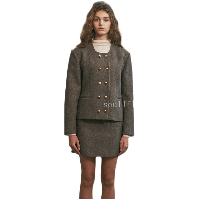 Korean ged two-piece suit double row gold buckle temperament suit jacket skirt small fragrance suit female 2022 new