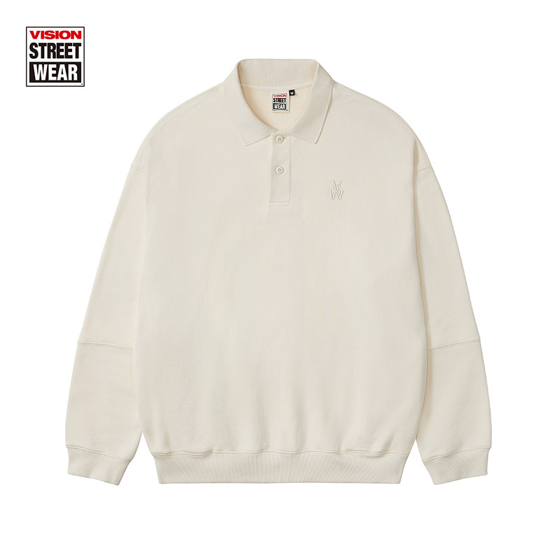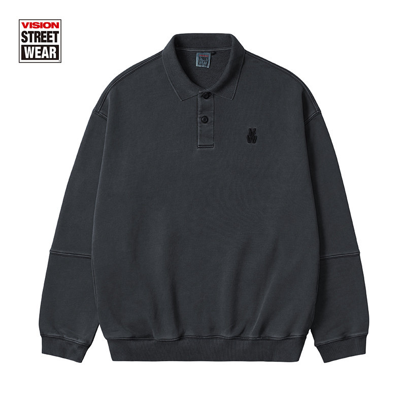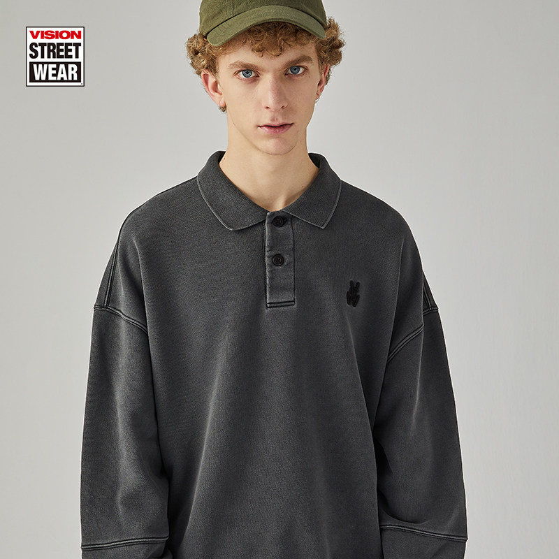 VISION retro splicing water washed as old loose long sleeve polo collar necropolis for men and women with the 22 22 new