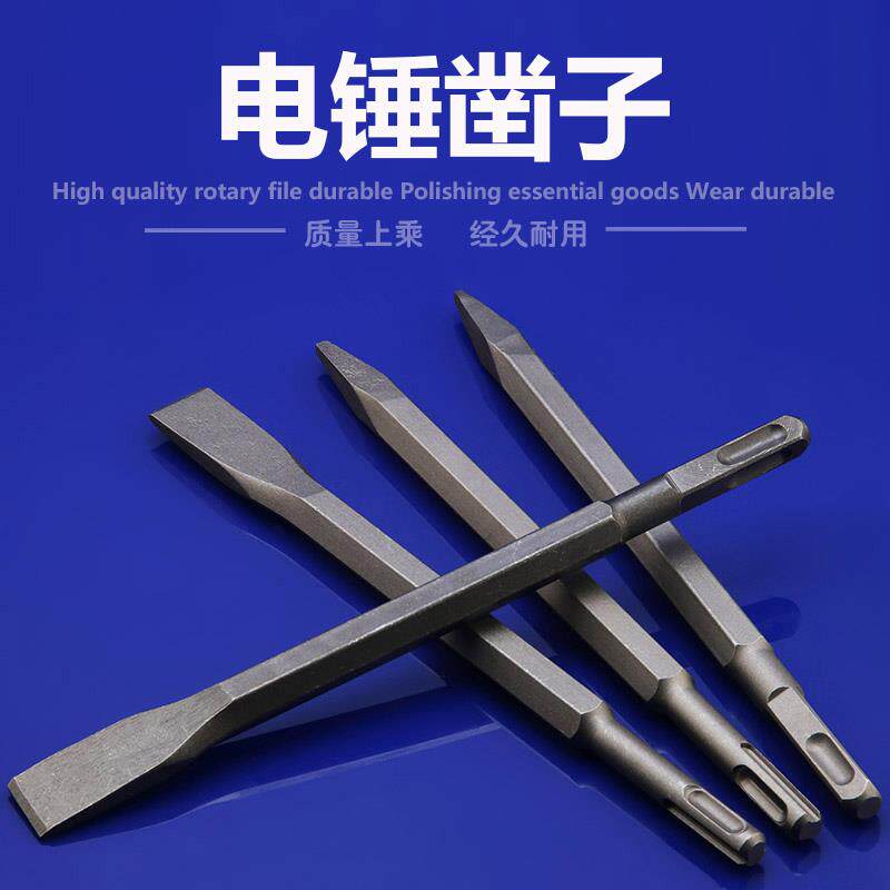 Electric hammer drill electric pick impact drill head square handle spring pipe sharp chisel flat chisel bending electric pick head widening lengthened
