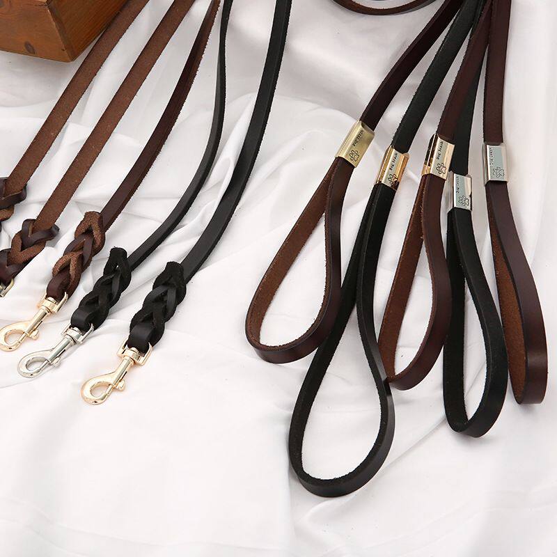 Real leather dog leash medium and large dogs German shepherd golden retriever French dog leather dog leash walking dog strong