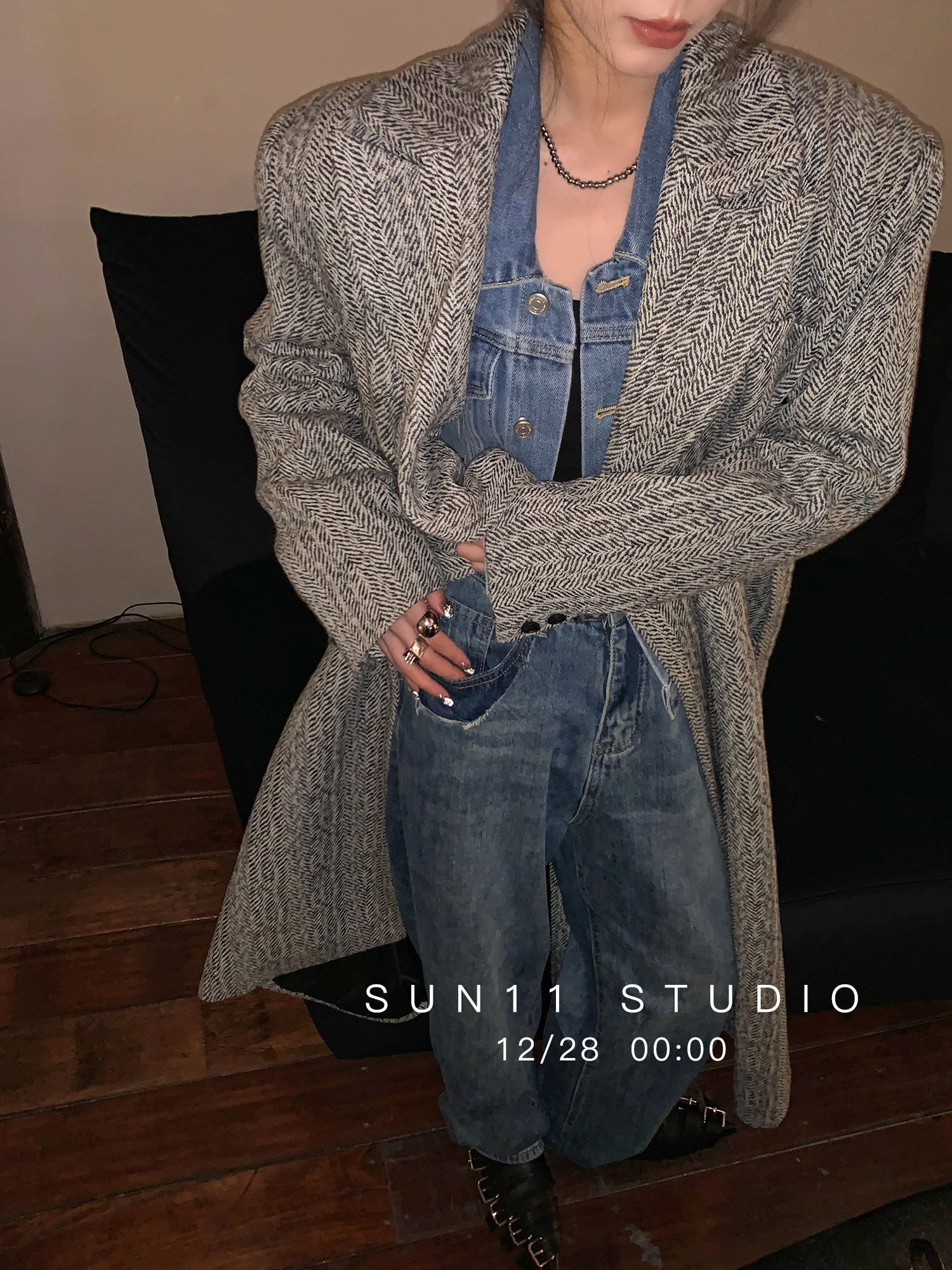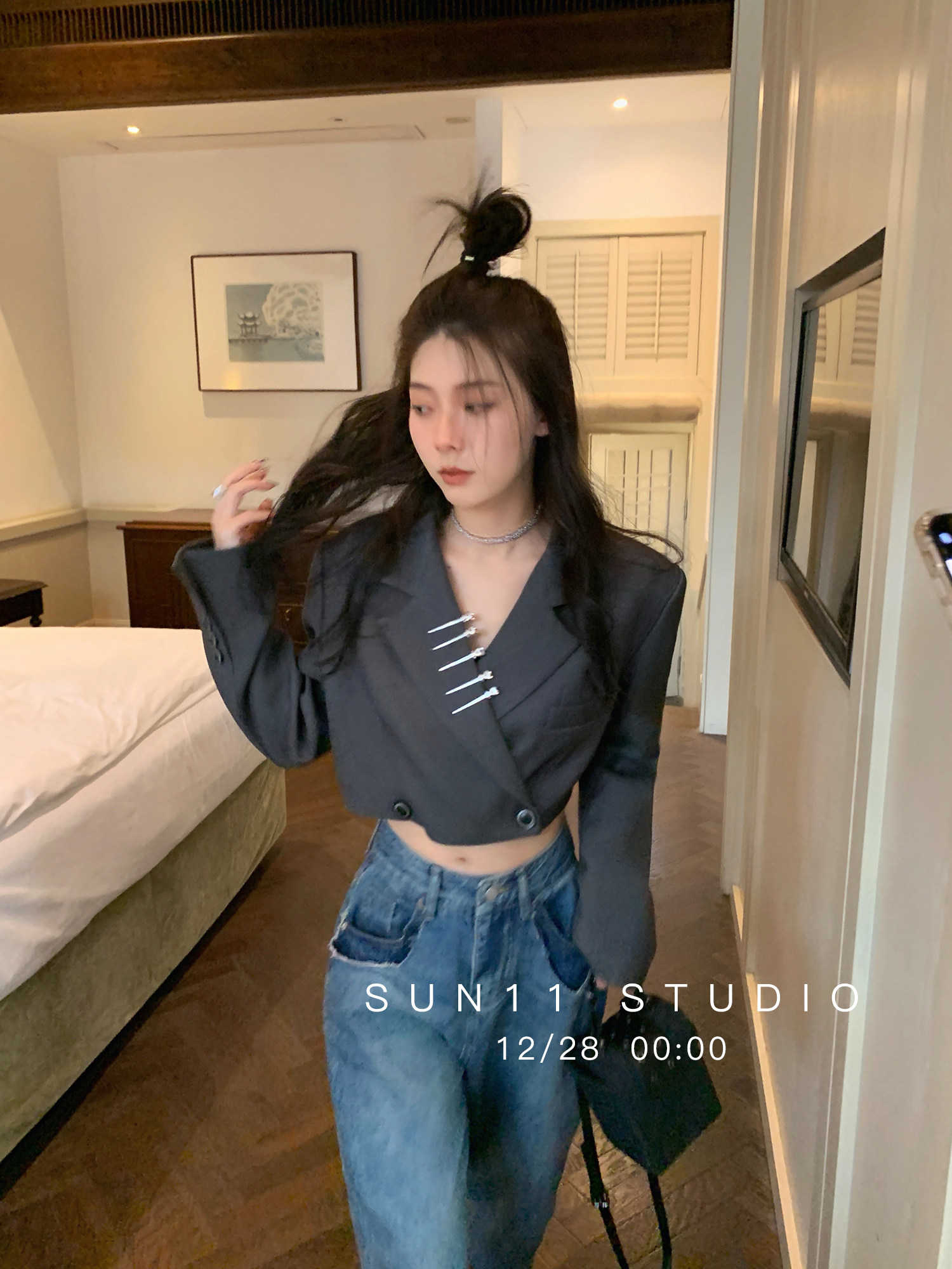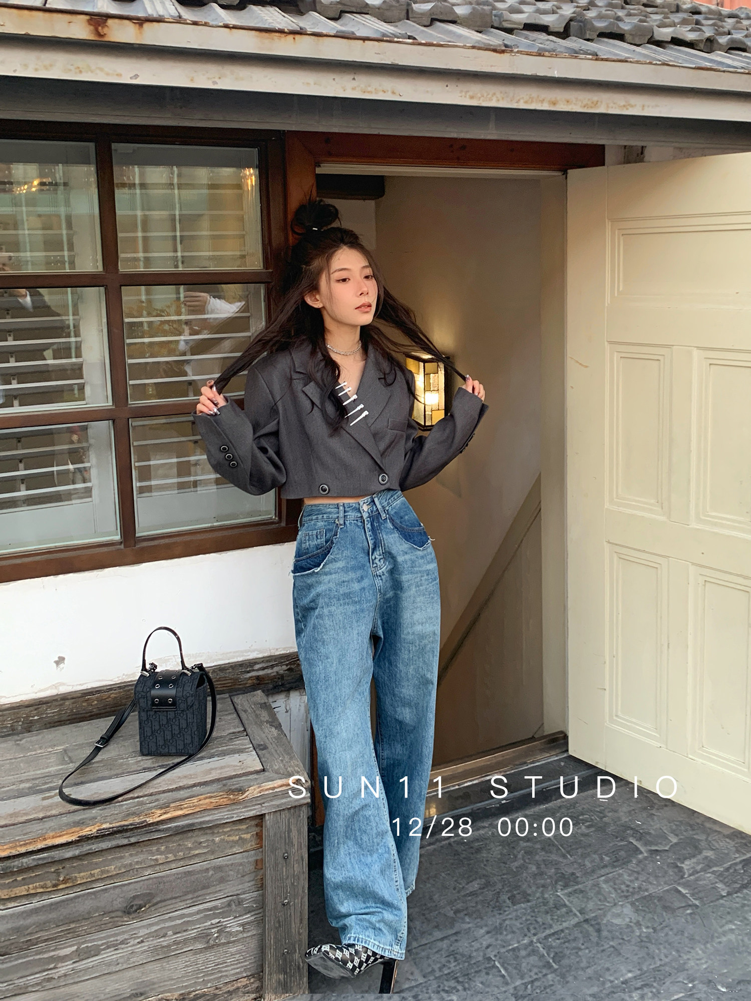 SUN11 retro high waist jeans women's design sense niche 2022 spring and autumn new blue loose straight pants