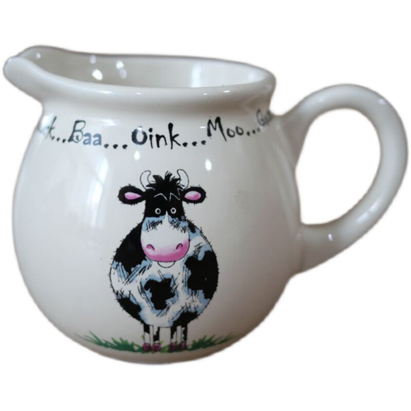 W1962 French cartoon cute flower arrangement style high temperature ceramic hand pinch milk color ceramic duck sugar jar cow milk bottle