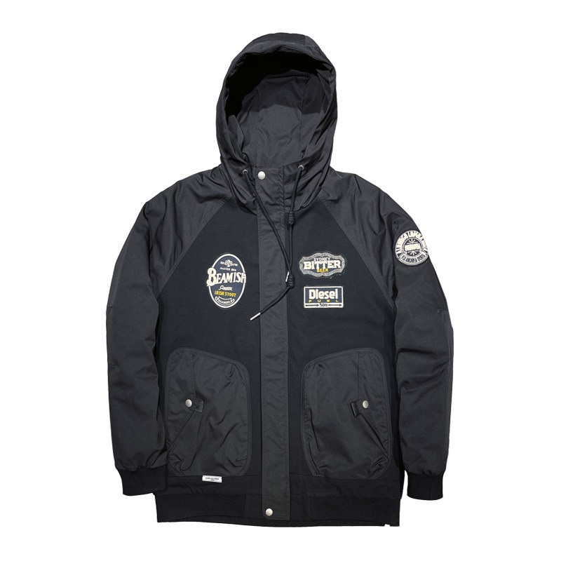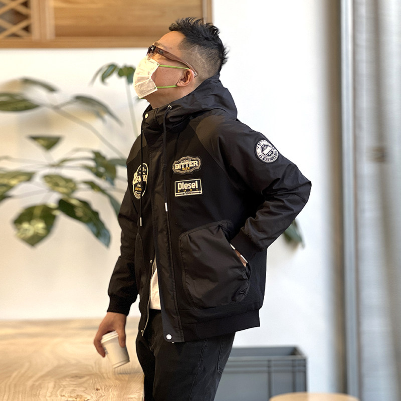 American casual splicing retro jacket men's trendy brand ruffian handsome 2022 autumn patch sports hooded all-match jacket