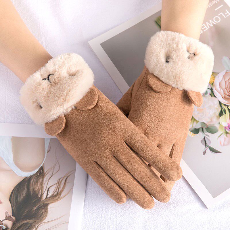 Japanese GP gloves winter female plus velvet touch screen suede warm winter cycling gloves female cute student