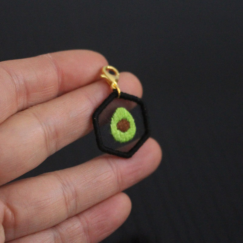 {Finished product}Hand-embroidered cherry ginkgo avocado PDA TN bag pendant jewelry keychain creative gift