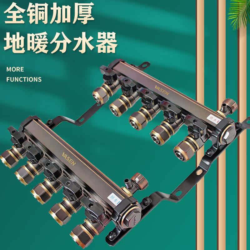 Great Star Full copper Large flow floor heating water distributor Ancient copper Domestic Geothermal Diversity sprinkler Special valve complete 3-way