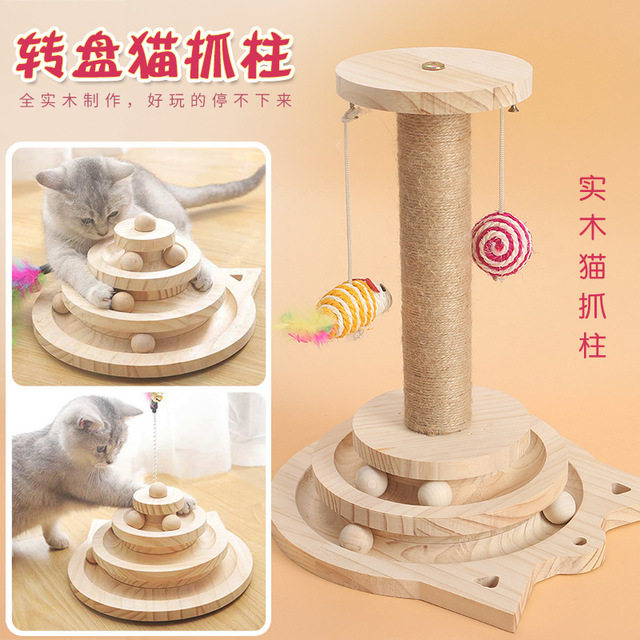 Sisal cat scratching board cat scratching column claw grinder vertical solid wood turntable wear-resistant cat climbing frame funny cat toy cat pet