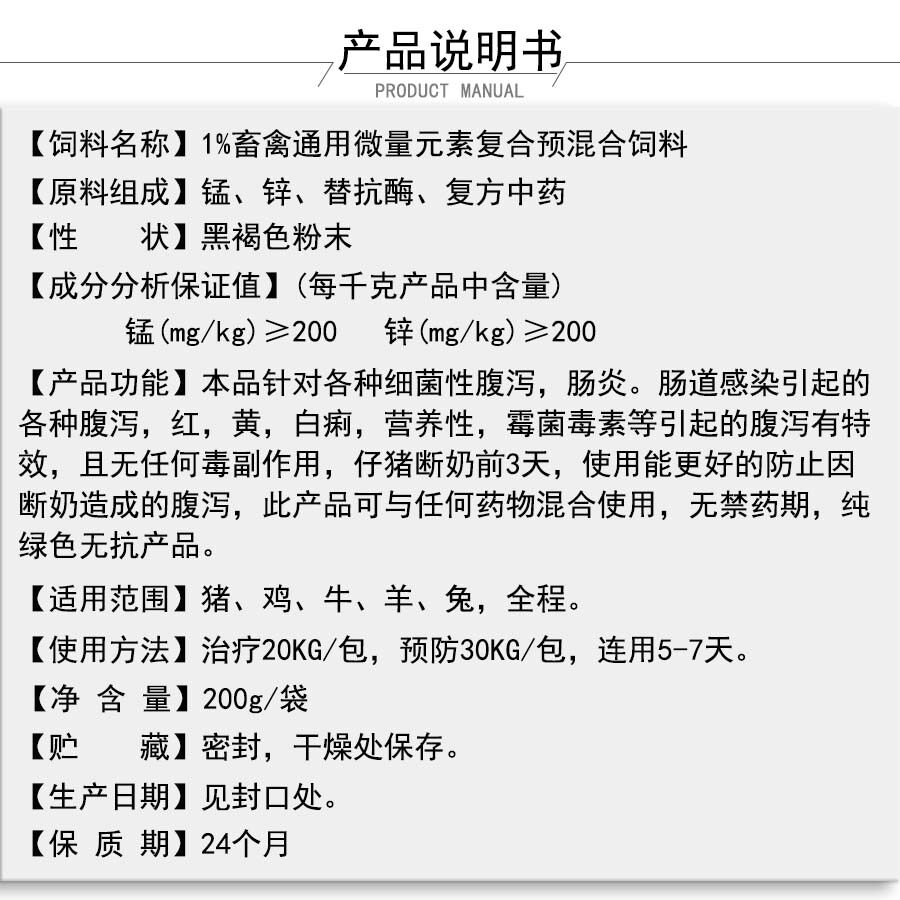 Pig Hens Goat Rabbit Livestock Common Trace Element Pre Mix Natural plant feedstocks to prevent diarrhoea special effects