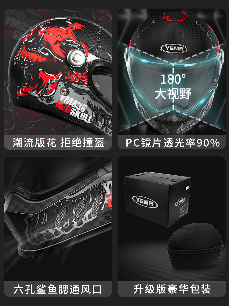 Mustang carbon fiber motorcycle helmet four seasons male and female personality shark lightweight retro motorcycle safety helmet cap