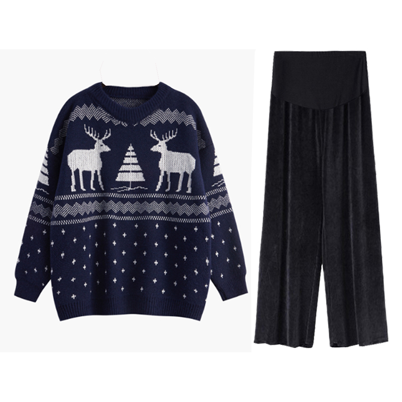 Pregnant Woman Sweater Winter Women's Autumn Winter Suit Beating Bottom Middle Long Version Blouse Net Red Inner Hitch Undershirt Fashion Two Sets