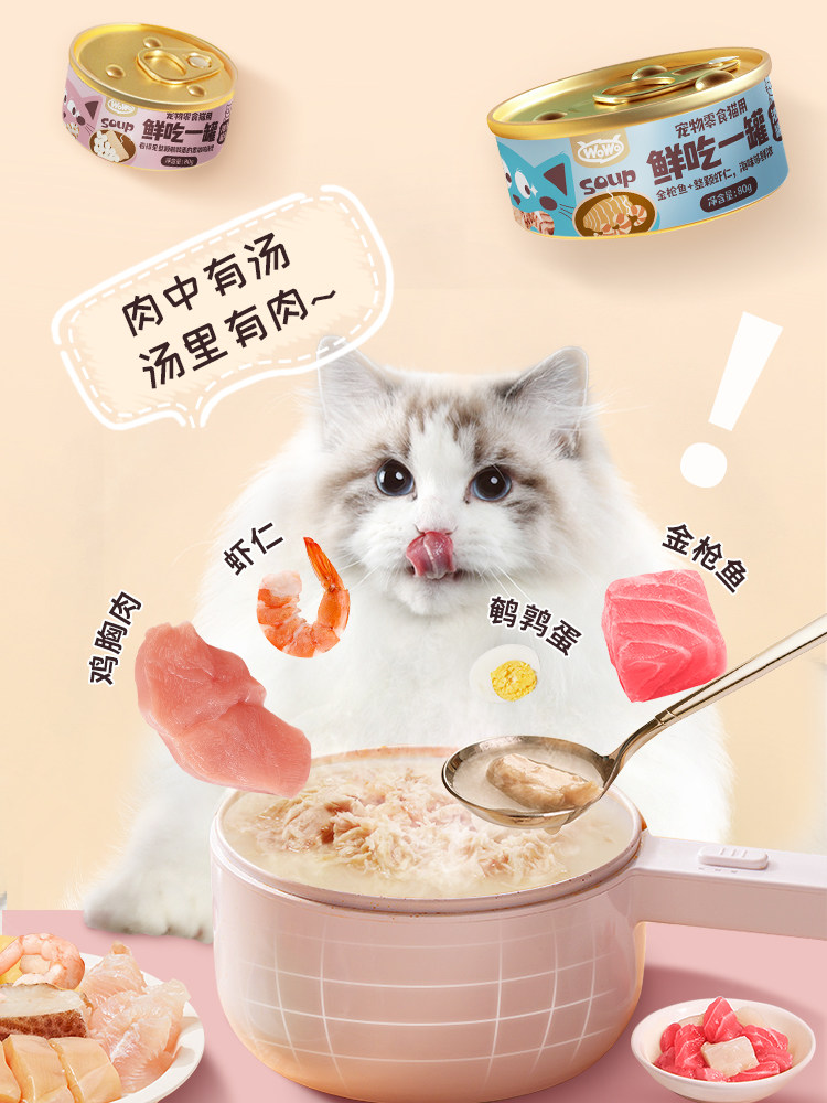 Wow Woooh, cat cans young cat into cat and cat snacks nutritious wet grain no-valley fresh meat soup pot