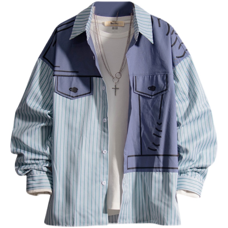 Flammable Youth Boomer 2022 Department of Youth Shirt Boys Spring Long sleeves Shirt Loose Splicing Casual