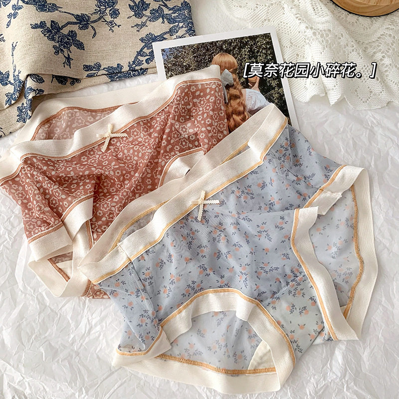 Day Series Vegetarian Yamonai Fields Garden Wind Light Thin Web Yarn Lace Lady Briefs Breathable Cotton Crotch Hip-pocket Hip Triangle Pants